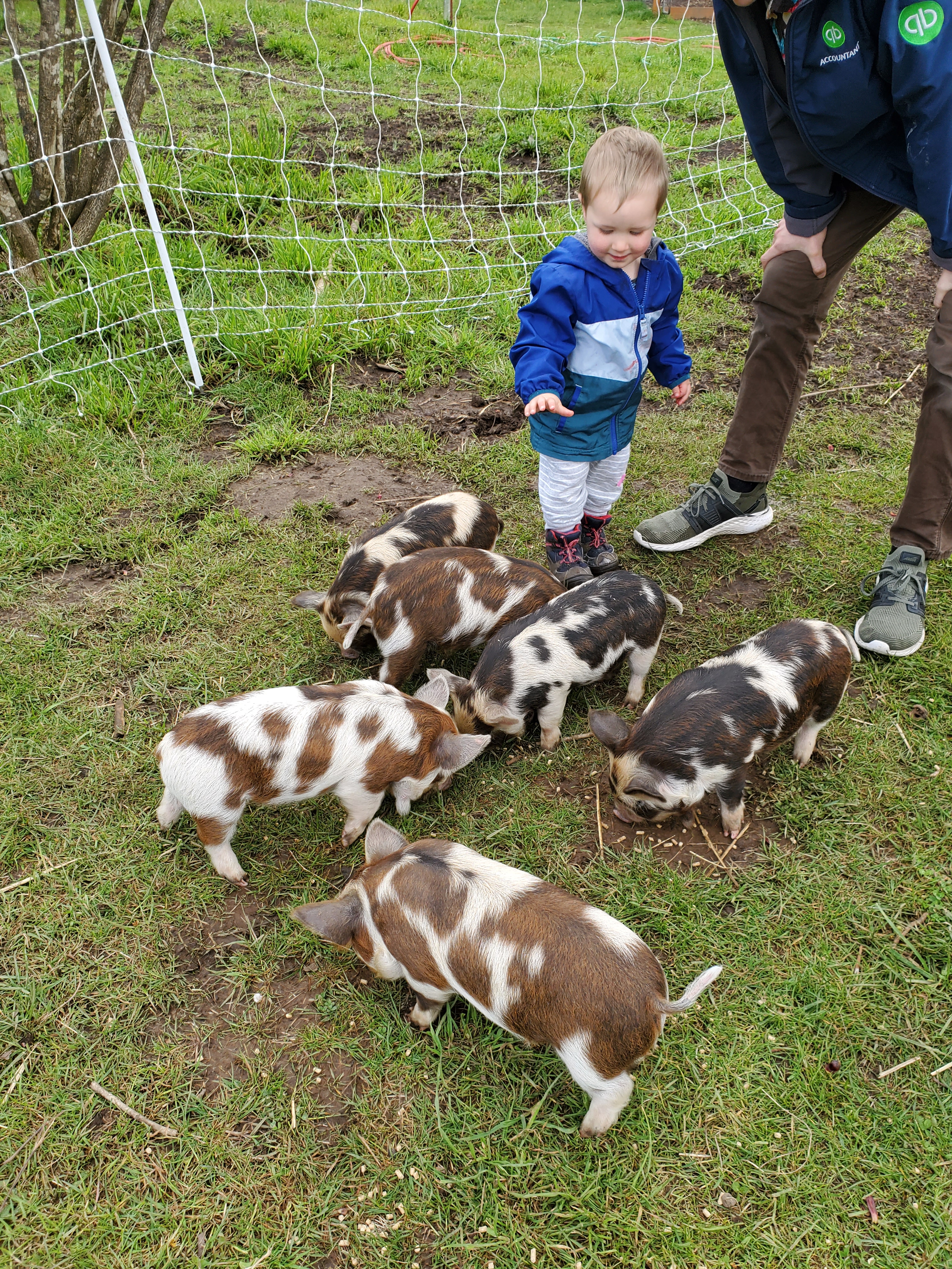 - After the barn animals, we move outside over to our pig petting pen where we have two adult pigs for petting and piglets depending on when they were born.