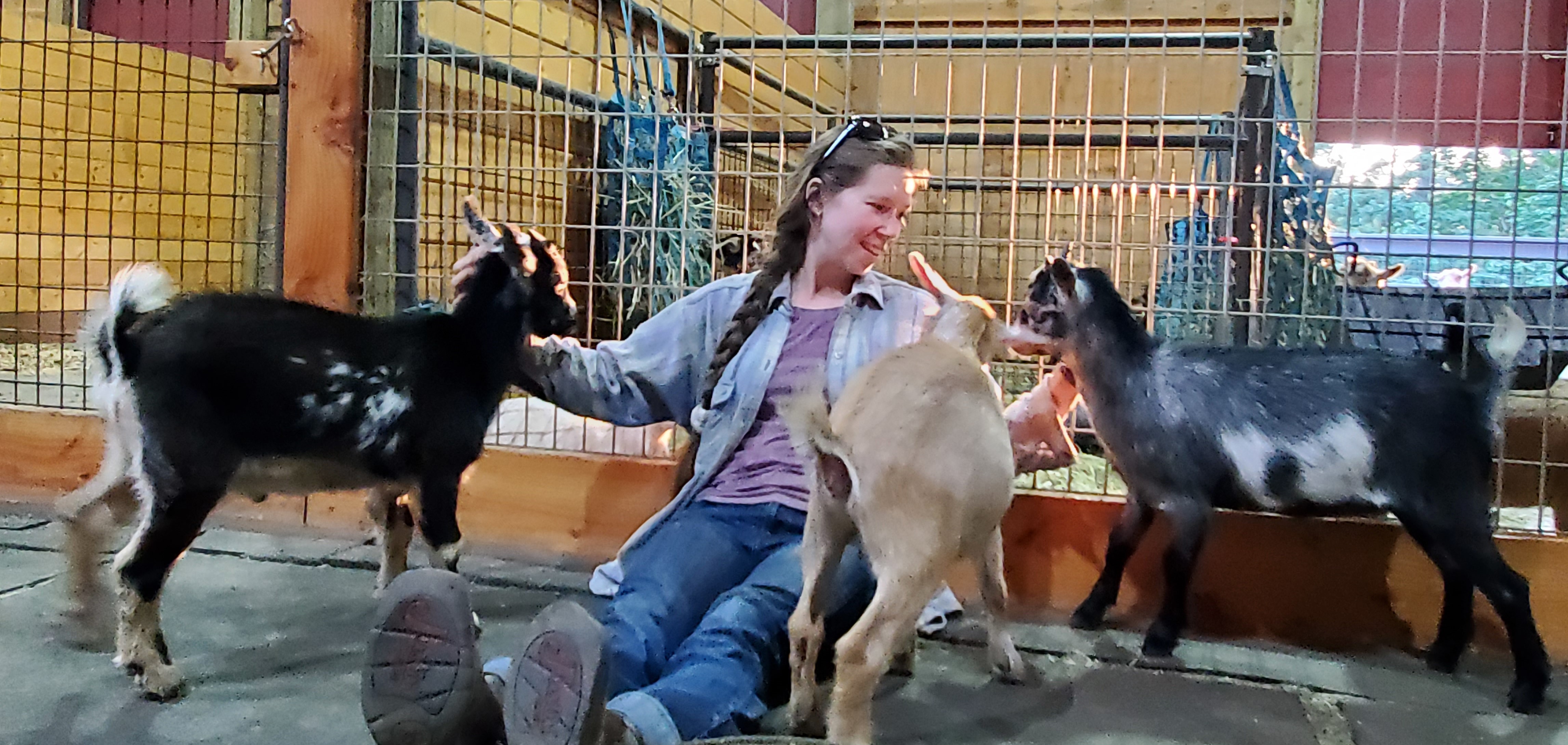 - Once everyone is ready to move on we put the miniature horses away and bring out the Nigerian Dwarf goats for guests to pet and interact with.